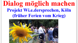 In einem Vortrag mit Bildern berichten Aktive des Projekts „Wi.e.dersprechen“ von den Erfahrungen aus über 20 Jahren politischem Dialog zwischen jungen Menschen aus Palästina und Israel. 1994 als „Ferien vom Krieg“ für Kinder im ehemaligen Jugoslawien gegründet, schafft „Wi.e.dersprechen...